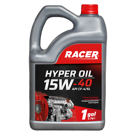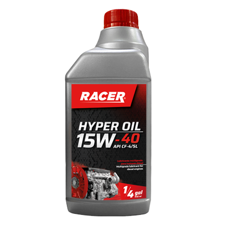 RACER HYPER OIL 15W-40 API CF-4/SL, es un lubricante desarrollado con bases altamente refinadas y un balanceado paquete de aditivos que permite un mejor desempeño de los motores diésel. Otorga mejor protección contra el desgaste, mantiene la potencia del motor e incrementa su vida útil.