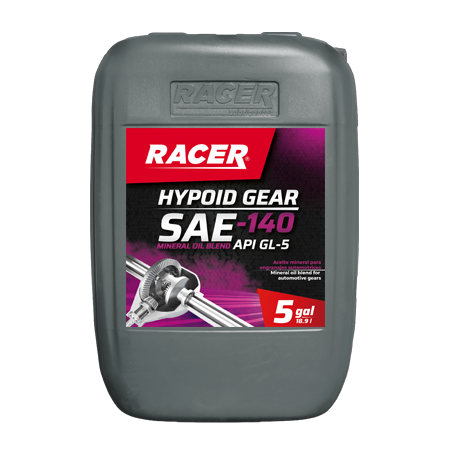 RACER HYPOID GEAR SAE 140 API GL-5, es un lubricante multigrado formulado con bases minerales de alta calidad, diseñado para engranajes hipoidales sometidos a cargas elevadas, deslizamiento y choques, donde se requiere una película resistente que evite el fallo por fatiga superficial en engranajes/rodamientos y rayado.