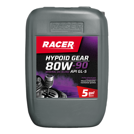 RACER HYPOID GEAR SAE 80W-90 API GL-5, es un lubricante multigrado formulado con bases minerales de alta calidad, diseñado para engranajes hipoidales sometidos a cargas elevadas, deslizamiento y choques, donde se requiere una película resistente que evite el fallo por fatiga superficial en engranajes/rodamientos y rayado.