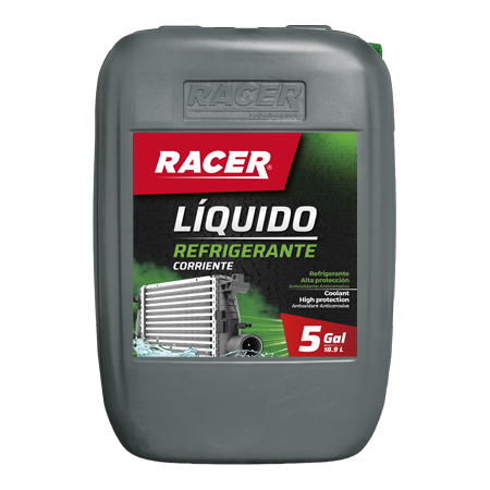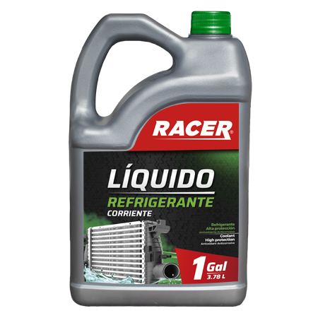 RACER LÍQUIDO REFRIGERANTE CORRIENTE, es un fluido refrigerante 20/80 anticorrosivo de alta calidad, basado en agua blanda desionizada que ofrece una eficacia sobresaliente. Es un producto listo para usar en radiadores de vehículos livianos donde previene las incrustaciones, el taponamiento, la corrosión y además protege la bomba de agua.
