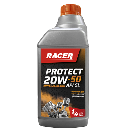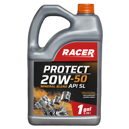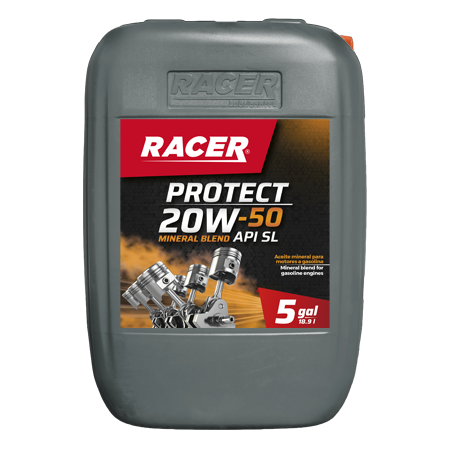 RACER PROTECT 20W-50 API SL, es un lubricante elaborado a base de aceites básicos vírgenes de tipo parafínico, un paquete de aditivos de tecnología avanzada y un mejorador de índice de viscosidad de alta resistencia en motores a gasolina. Es un aceite multigrado con aditivos de alta tecnología que lo hacen óptimo para ser utilizado en cualquier clima.
